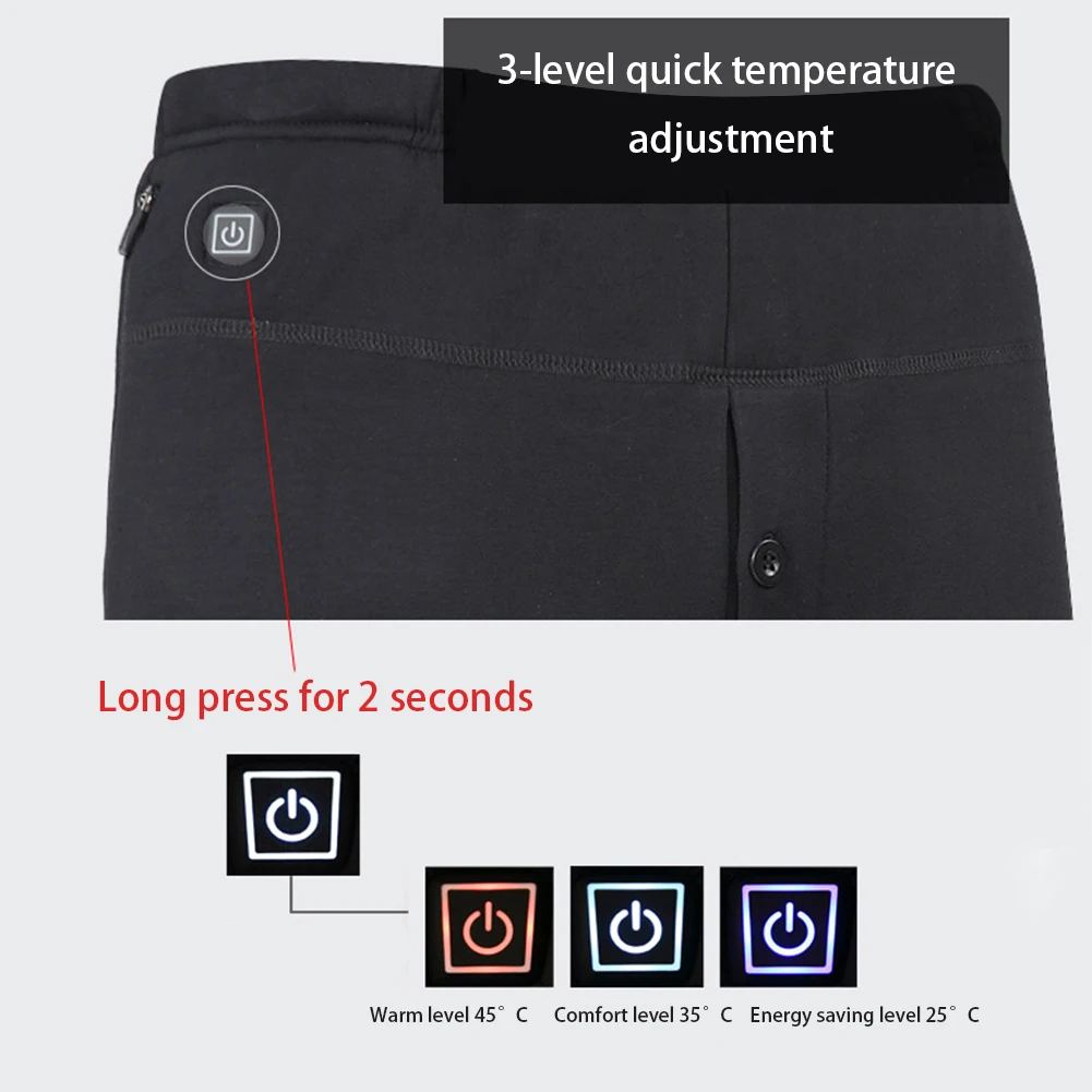 Buksene er laget med solid håndverk og slitesterke materialer som både ser bra ut og føles behagelige på kroppen. De drives via et universelt USB-grensesnitt, og kan brukes med vanlige 5V/2A powerbanker – praktisk og fleksibelt, uansett hvor du befinner deg.