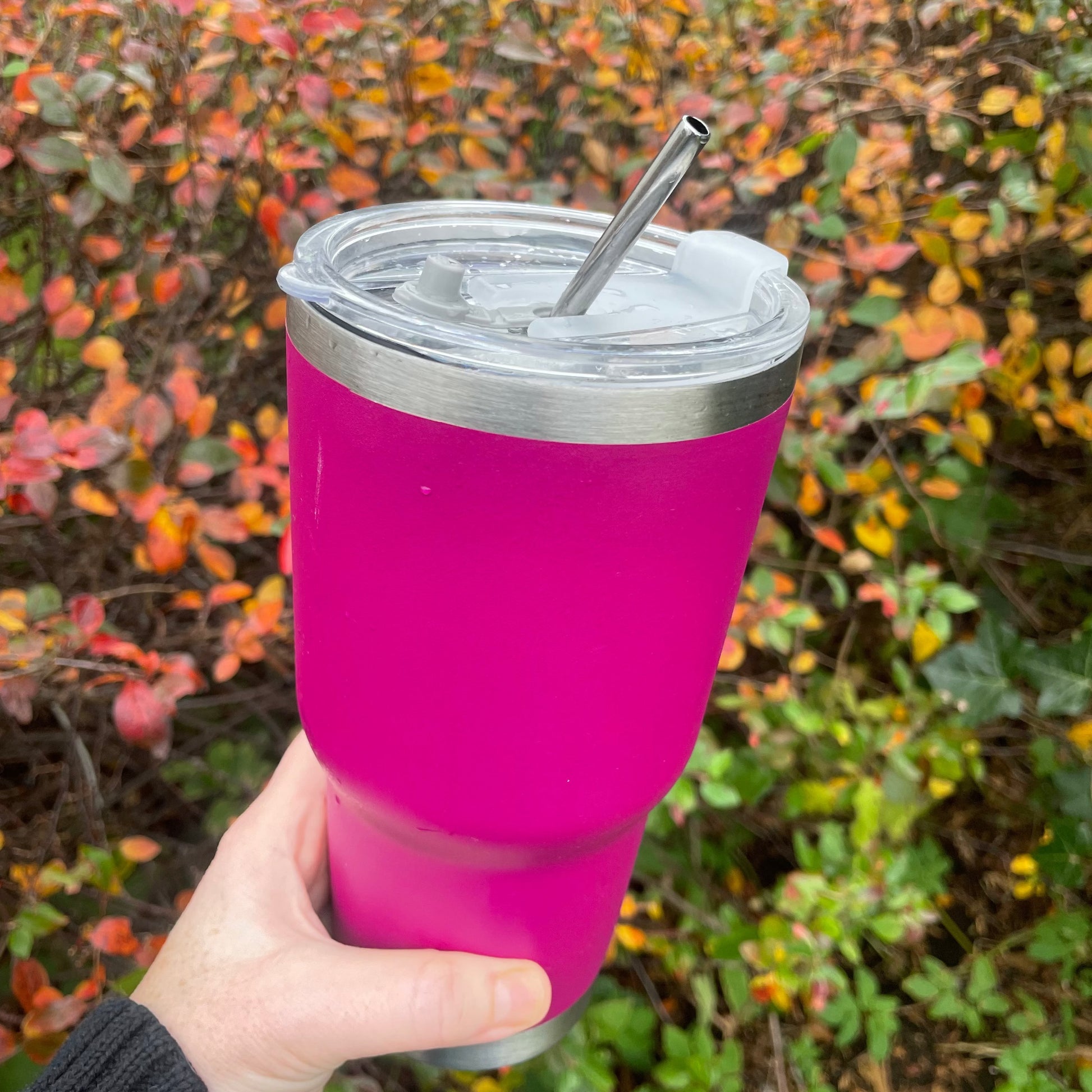 Upplev komforten med att bära din termos vart du än går! Denna 30oz flaska i rostfritt stål har en dubbel vätskekonstruktion som håller drycker kalla eller varma i timmar. Den är designad för att passa i de flesta mugghållare och är perfekt för användning i bilar.